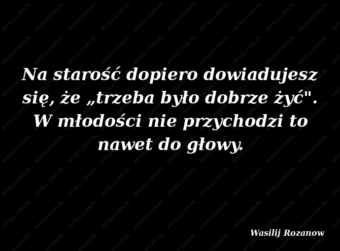 Na starość dopiero dowiadujesz się, że „trzeba było dobrze żyć". W młodości nie przychodzi to nawet do głowy.