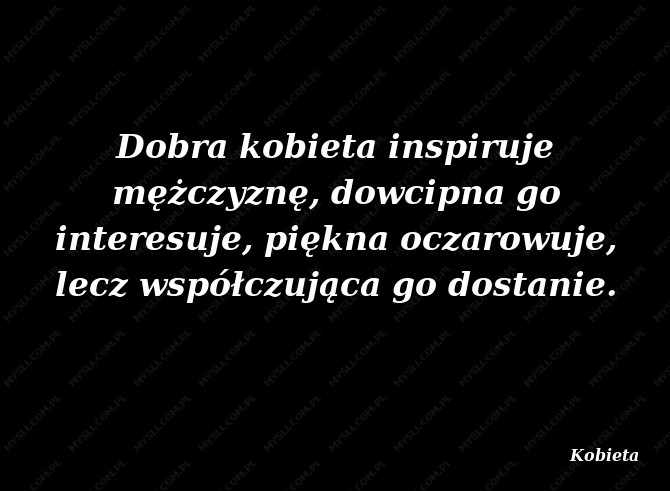 Dobra kobieta inspiruje mężczyznę, dowcipna go interesuje, piękna oczarowuje, lecz współczująca go dostanie.