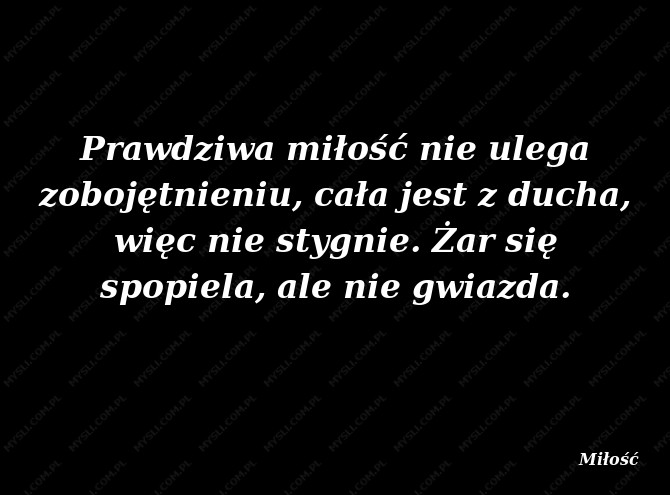 Prawdziwa miłość nie ulega zobojętnieniu, cała jest z ducha, więc nie stygnie. Żar się spopiela, ale nie gwiazda.