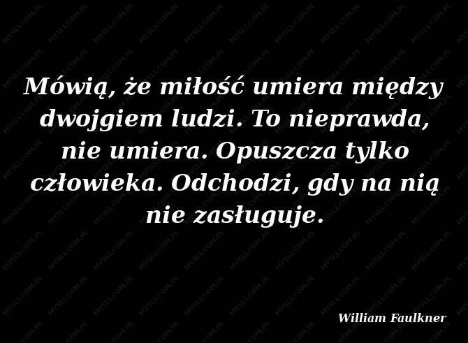 Mówią, że miłość umiera między dwojgiem ludzi. To nieprawda, nie umiera. Opuszcza tylko człowieka. Odchodzi, gdy na nią nie zasługuje.
