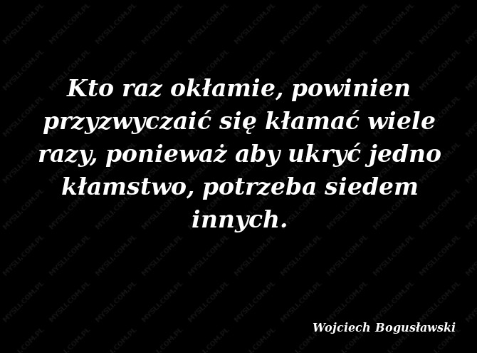 Kto raz okłamie, powinien przyzwyczaić się kłamać wiele razy, ponieważ aby ukryć jedno kłamstwo, potrzeba siedem innych.