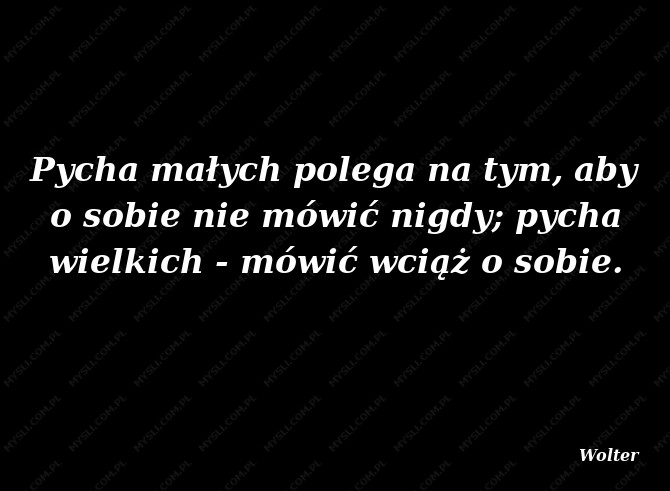 Pycha małych polega na tym, aby o sobie nie mówić nigdy; pycha wielkich - mówić wciąż o sobie.