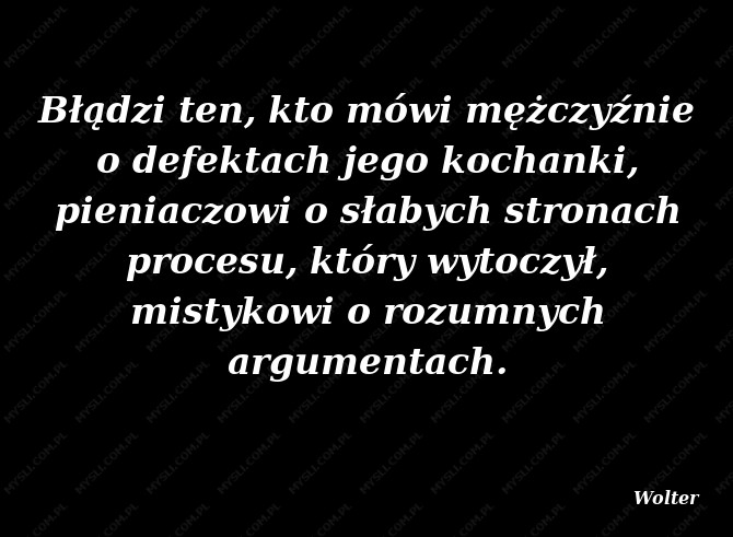 Błądzi ten, kto mówi mężczyźnie o defektach jego kochanki, pieniaczowi o słabych stronach procesu, który wytoczył, mistykowi o rozumnych argumentach.