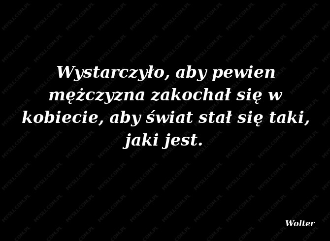 Wystarczyło, aby pewien mężczyzna zakochał się w kobiecie, aby świat stał się taki, jaki jest.