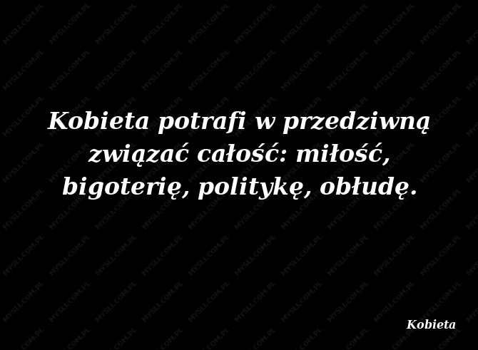 Kobieta potrafi w przedziwną związać całość: miłość, bigoterię, politykę, obłudę.