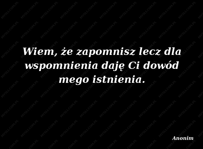 Wiem, że zapomnisz lecz dla wspomnienia daję Ci dowód mego istnienia.