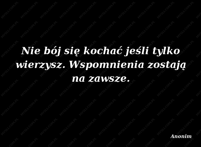 Nie bój się kochać jeśli tylko wierzysz. Wspomnienia zostają na zawsze.