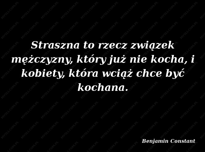 Najgorsze co może spotkać mężczyznę to związek z kobietą nie kochającą na tyle, by nie widzieć słabostek, które on usiłuje ukryć przed samym sobą i na tyle brutalną, aby wywlekać je przed innymi.