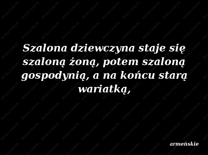 Szalona dziewczyna staje się szaloną żoną, potem szaloną gospodynią, a na końcu starą wariatką,