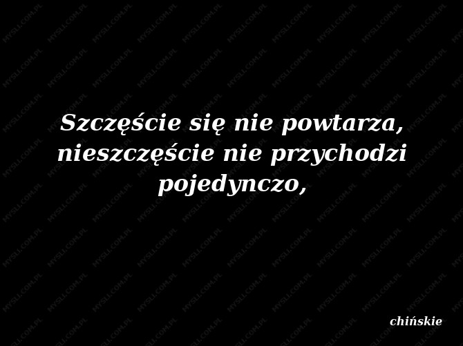 Szczęście się nie powtarza, nieszczęście nie przychodzi pojedynczo,
