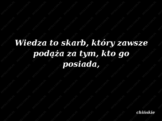 Wiedza to skarb, który zawsze podąża za tym, kto go posiada,