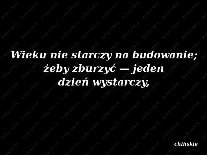 Wieku nie starczy na budowanie; żeby zburzyć — jeden dzień wystarczy,