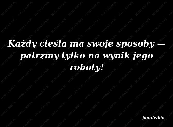 Każdy cieśla ma swoje sposoby — patrzmy tylko na wynik jego roboty!