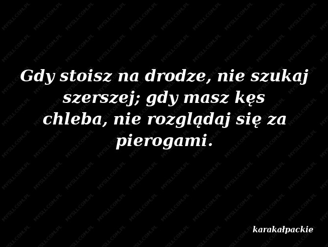 Gdy stoisz na drodze, nie szukaj szerszej; gdy masz kęs chleba, nie rozglądaj się za pierogami.