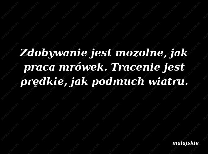 Zdobywanie jest mozolne, jak praca mrówek. Tracenie jest prędkie, jak podmuch wiatru.