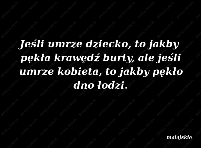 Jeśli umrze dziecko, to jakby pękła krawędź burty, ale jeśli umrze kobieta, to jakby pękło dno łodzi.