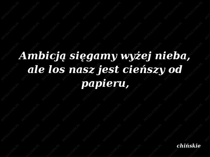 Ambicją sięgamy wyżej nieba, ale los nasz jest cieńszy od papieru.