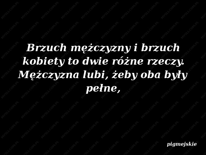 Brzuch mężczyzny i brzuch kobiety to dwie różne rzeczy. Mężczyzna lubi, żeby oba były pełne,