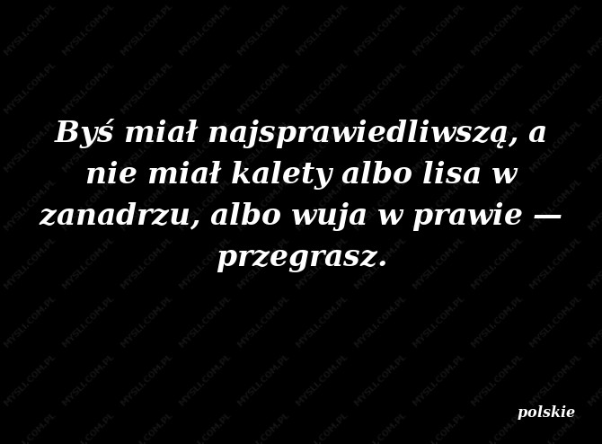 Byś miał najsprawiedliwszą, a nie miał kalety albo lisa w zanadrzu, albo wuja w prawie — przegrasz.