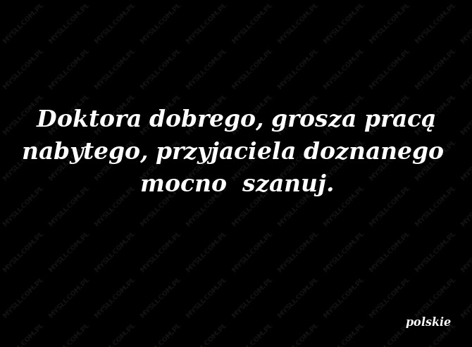 Doktora dobrego, grosza pracą nabytego, przyjaciela doznanego mocno szanuj.