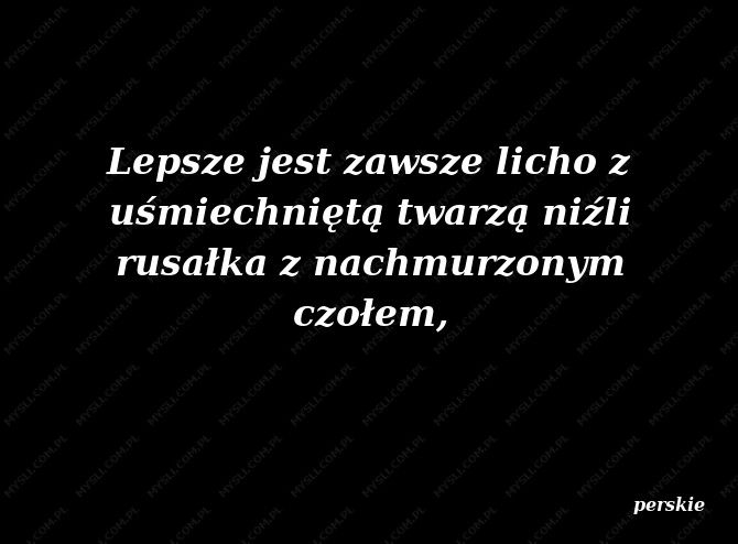 Lepsze jest zawsze licho z uśmiechniętą twarzą niźli rusałka z nachmurzonym czołem,