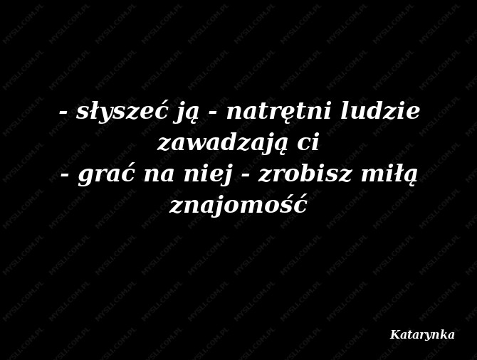 - słyszeć ją - natrętni ludzie zawadzają ci - grać na niej - zrobisz miłą znajomość