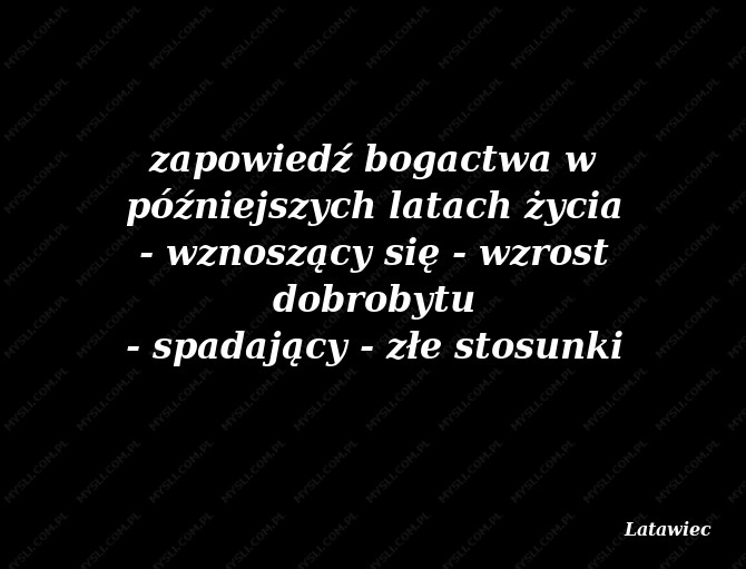 zapowiedź bogactwa w późniejszych latach życia - wznoszący się - wzrost dobrobytu - spadający - złe stosunki