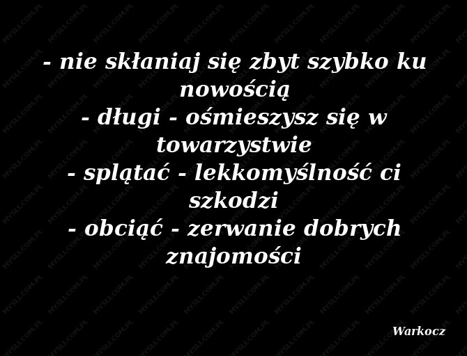 - nie skłaniaj się zbyt szybko ku nowością - długi - ośmieszysz się w towarzystwie - splątać - lekkomyślność ci szkodzi - obciąć - zerwanie dobrych znajomości