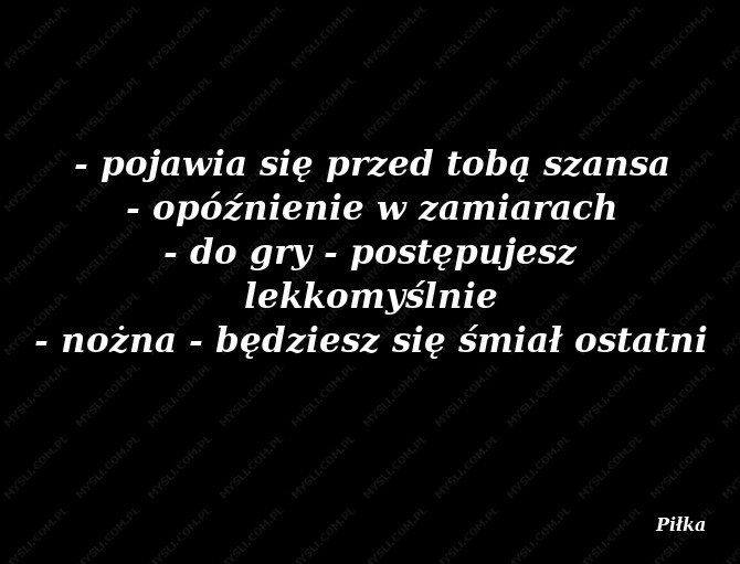 - pojawia się przed tobą szansa - opóźnienie w zamiarach - do gry - postępujesz lekkomyślnie - nożna - będziesz się śmiał ostatni