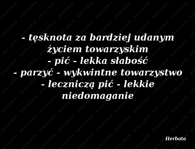 - tęsknota za bardziej udanym życiem towarzyskim - pić - lekka słabość - parzyć - wykwintne towarzystwo - leczniczą pić - lekkie niedomaganie