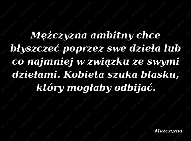 Mężczyzna ambitny chce błyszczeć poprzez swe dzieła lub co najmniej w związku ze swymi dziełami. Kobieta szuka blasku, który mogłaby odbijać.