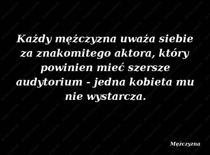 Każdy mężczyzna uważa siebie za znakomitego aktora, który powinien mieć szersze audytorium - jedna kobieta mu nie wystarcza.