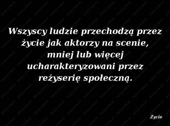 Wszyscy ludzie przechodzą przez życie jak aktorzy na scenie, mniej lub więcej ucharakteryzowani przez reżyserię społeczną.