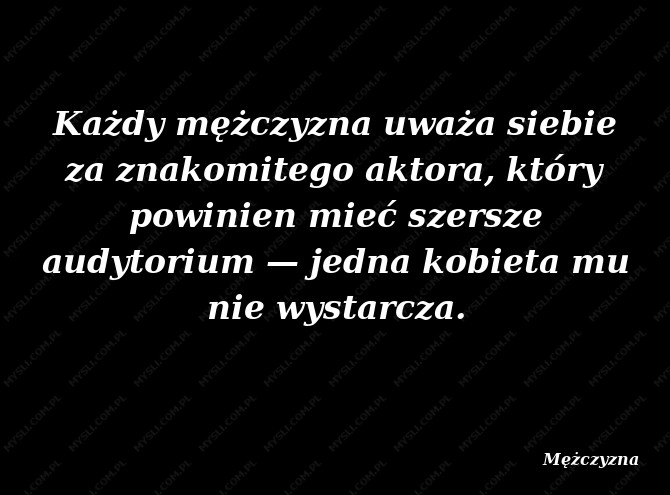Każdy mężczyzna uważa siebie za znakomitego aktora, który powinien mieć szersze audytorium — jedna kobieta mu nie wystarcza.