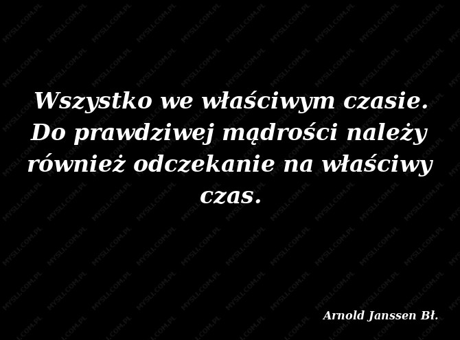 Wszystko we właściwym czasie. Do prawdziwej mądrości należy również odczekanie na właściwy czas.