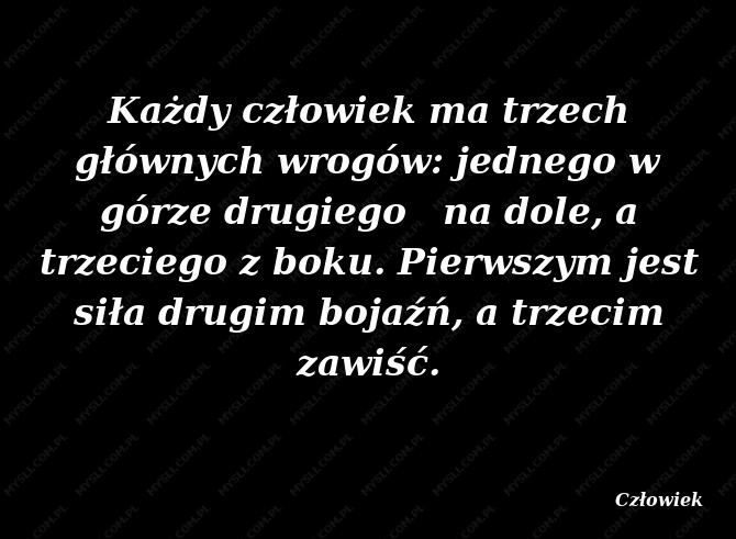 Każdy człowiek ma trzech głównych wrogów: jednego w górze drugiego na dole, a trzeciego z boku. Pierwszym jest siła drugim bojaźń, a trzecim zawiść.