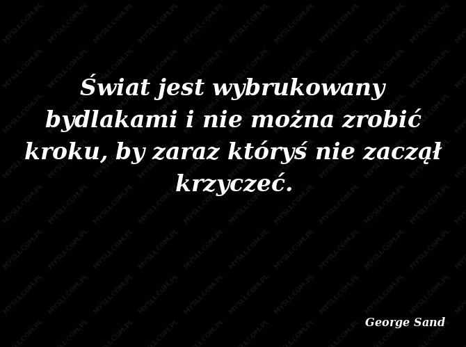 Świat jest wybrukowany bydlakami i nie można zrobić kroku, by zaraz któryś nie zaczął krzyczeć.
