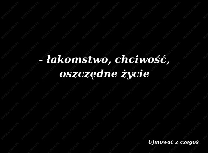 - łakomstwo, chciwość, oszczędne życie