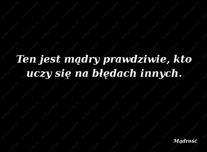 Ten jest mądry prawdziwie, kto uczy się na błędach innych.