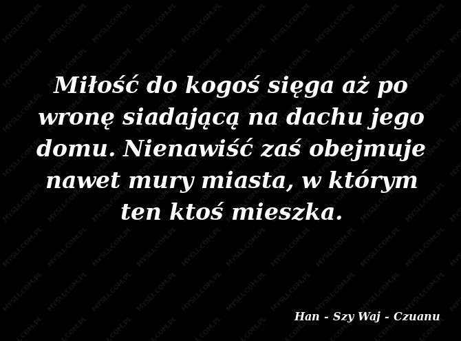 Miłość do kogoś sięga aż po wronę siadającą na dachu jego domu. Nienawiść zaś obejmuje nawet mury miasta, w którym ten ktoś mieszka.