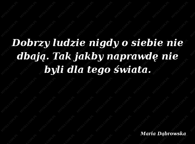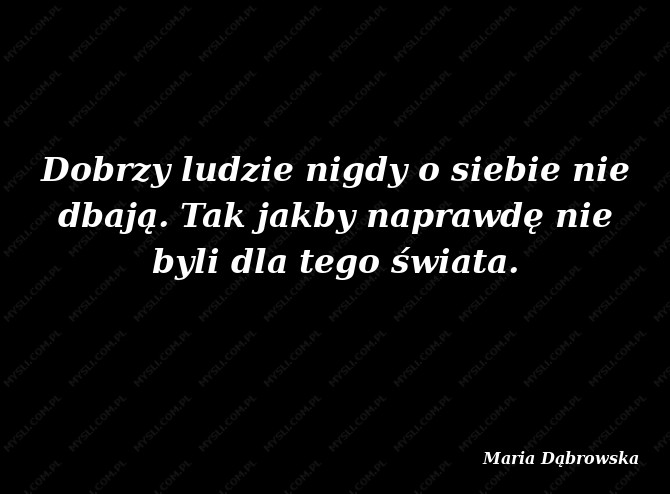 Dobrzy ludzie nigdy o siebie nie dbają. Tak jakby naprawdę nie byli dla tego świata.
