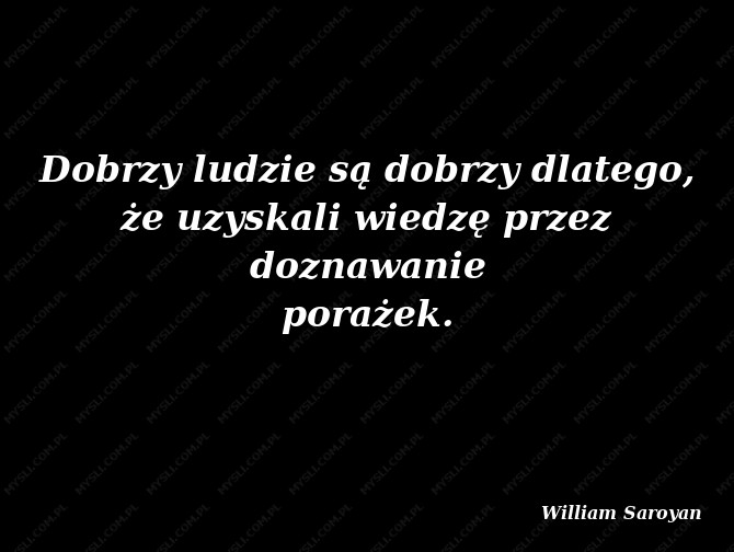 Dobrzy ludzie są dobrzy dlatego, że uzyskali wiedzę przez doznawanie porażek.