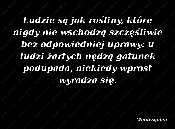 Ludzie są jak rośliny, które nigdy nie wschodzą szczęśliwie bez odpowiedniej uprawy: u ludzi żartych nędzą gatunek podupada, niekiedy wprost wyradza się.