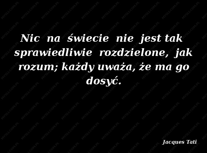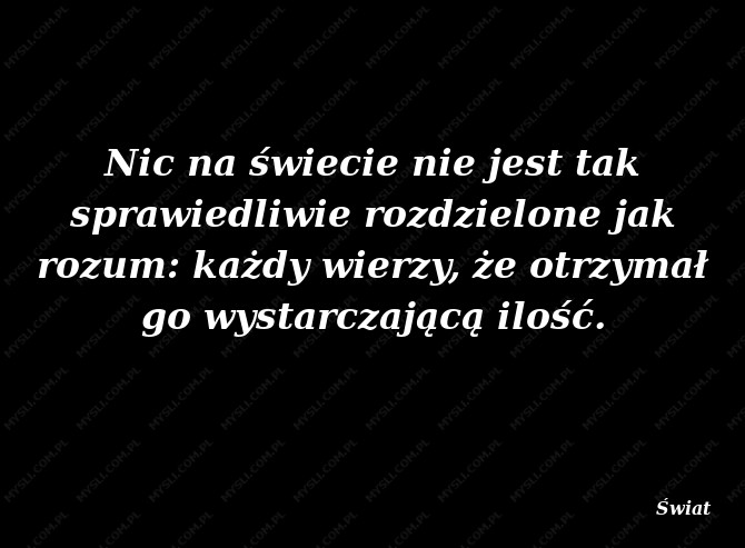 Nic na świecie nie jest tak sprawiedliwie rozdzielone jak rozum: każdy wierzy, że otrzymał go wystarczającą ilość.