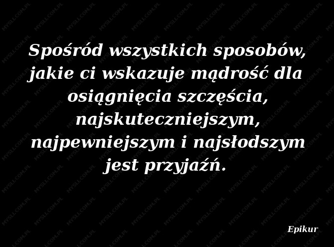 Spośród wszystkich sposobów, jakie ci wskazuje mądrość dla osiągnięcia szczęścia, najskuteczniejszym, najpewniejszym i najsłodszym jest przyjaźń.
