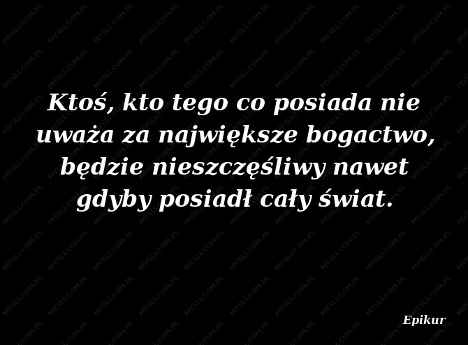 Ktoś, kto tego co posiada nie uważa za największe bogactwo, będzie nieszczęśliwy nawet gdyby posiadł cały świat.
