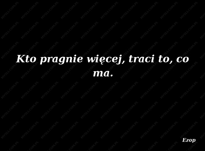 Kto pragnie więcej, traci to, co ma.