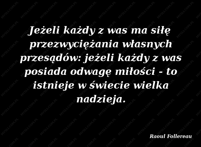 Jeżeli każdy z was ma siłę przezwyciężania własnych przesądów: jeżeli każdy z was posiada odwagę miłości - to istnieje w świecie wielka nadzieja.