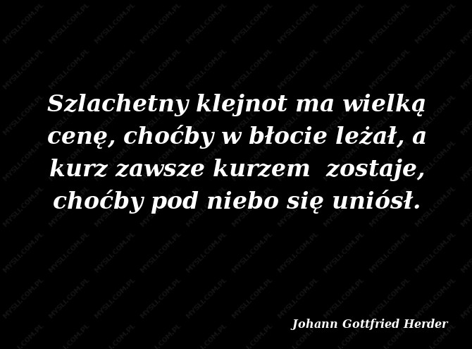 Szlachetny klejnot ma wielką cenę, choćby w błocie leżał, a kurz zawsze kurzem zostaje, choćby pod niebo się uniósł.