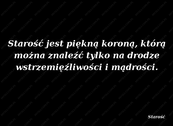 Starość jest piękną koroną, którą można znaleźć tylko na drodze wstrzemięźliwości i mądrości.